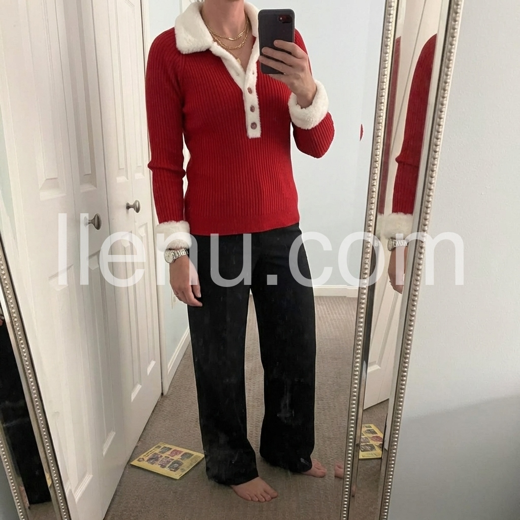 Yes!It runs true to the garment size chart please choose your size based on your measurements.This red ribbed top features a striking color block design and a faux fur trim that adds a touch of luxury to everyday wear. Equipped with button-front closure, it allows for versatile styling and easy layering. The ribbed fabric offers a comfortable, form-fitting silhouette, making it ideal for both casual and polished looks.