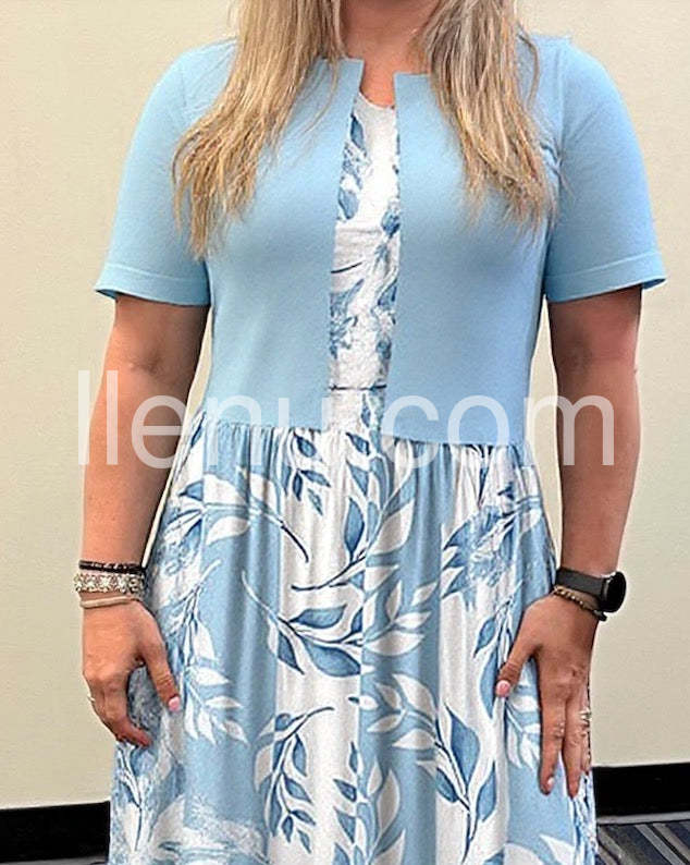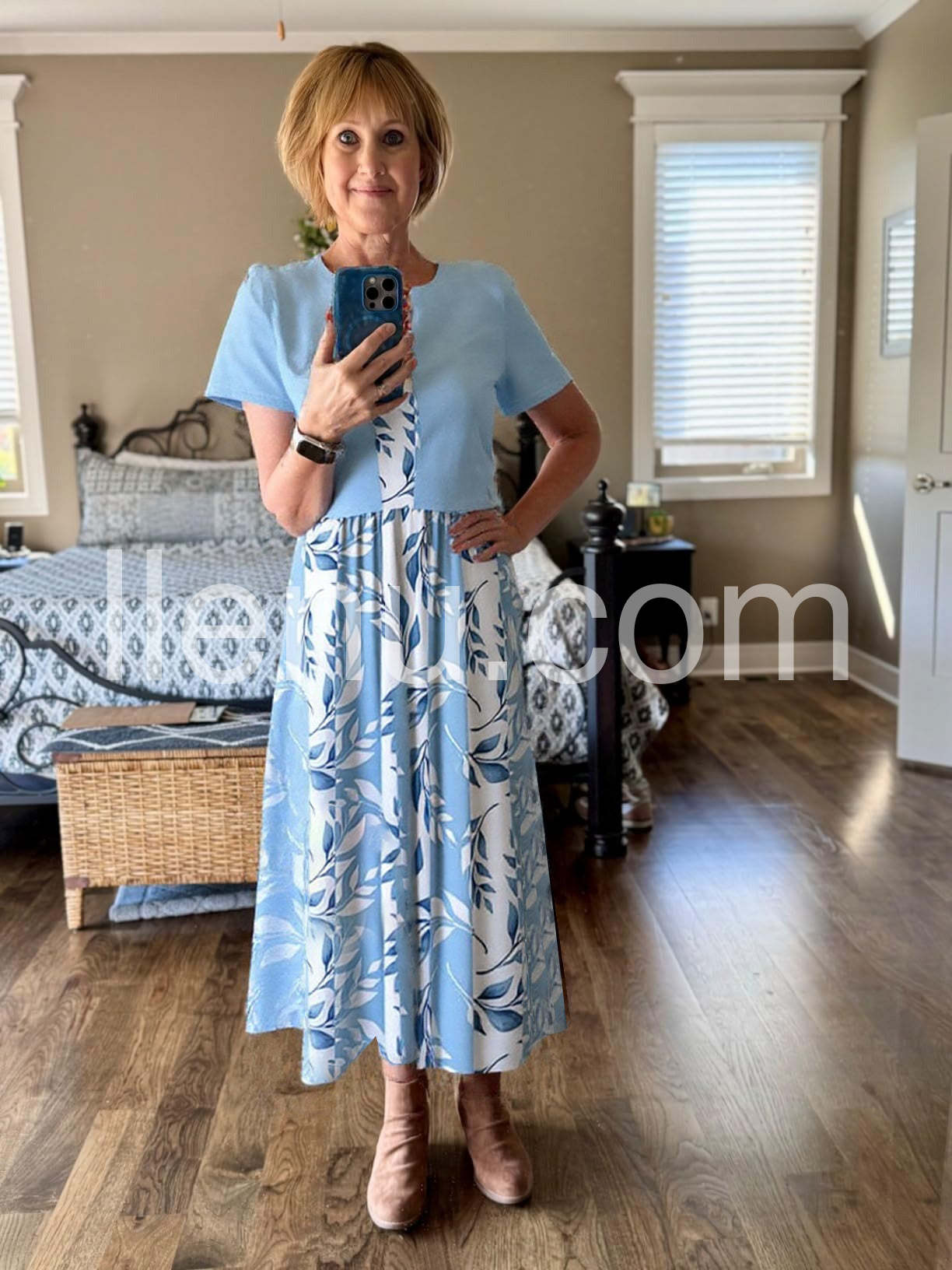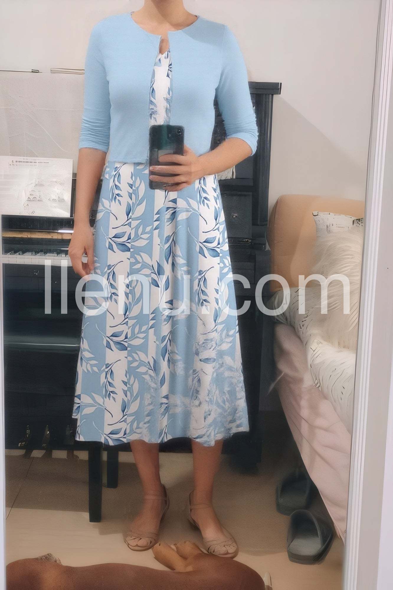Yes!It runs true to the garment size chart please choose your size based on your measurements.Discover the perfect balance of style and comfort with our Unique Blue Plant Print Midi Dress. Featuring a beautifully printed design and a matching jacket, this dress is perfect for any occasion. Made with high-quality materials, you'll feel confident and stylish all day long.