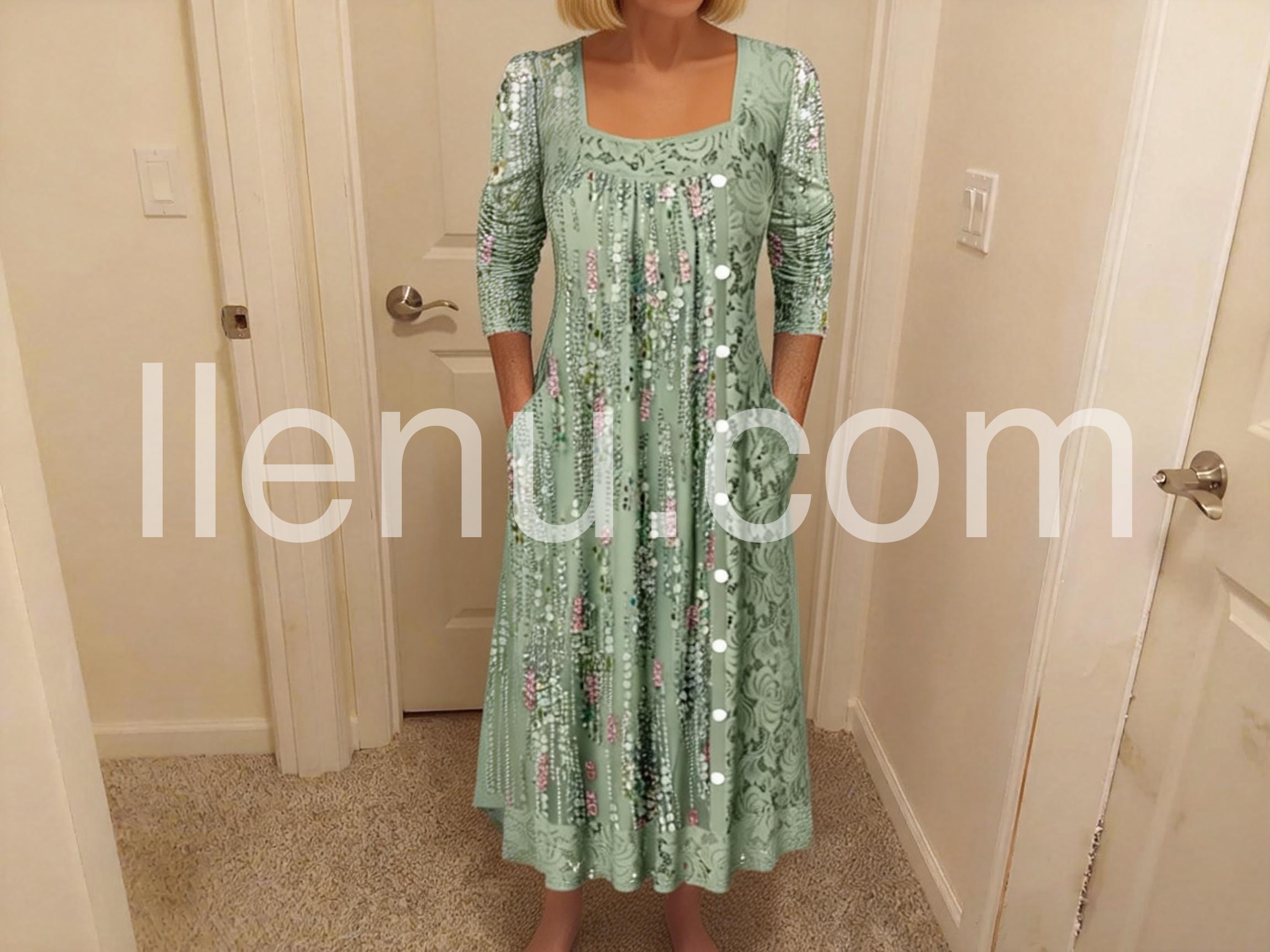 Yes!It runs true to the garment size chart please choose your size based on your measurements.Imagine effortless elegance that turns heads at every glance. This fresh green midi dress captures modern sophistication with its architectural square neckline that frames the collarbone beautifully, paired with graceful long sleeves for refined polish. The A-line silhouette flows with understated grace, while the luxurious rayon-elastane blend moves like silk against your skin—stretchy enough for all-day comfort, yet structured enough to maintain its impeccable shape. Practical side pockets add a touch of everyday luxury, while the midi length strikes the perfect balance between timeless and contemporary. Whether you're navigating the office, attending weekend brunches, or stepping into evening plans, this dress adapts seamlessly to your lifestyle. Machine washable for effortless care. Discover the dress that makes you feel as good as you look.
