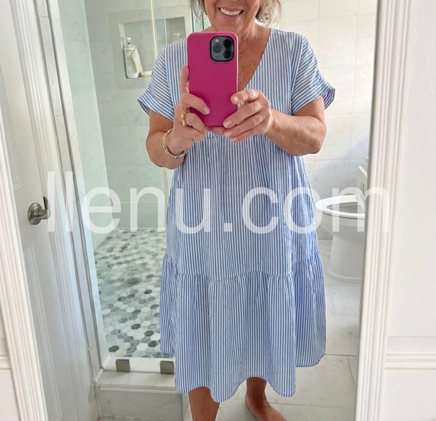 Yes!It runs true to the garment size chart please choose your size based on your measurements.This Youthful Striped Print V-Neck Midi Dress is designed for the modern fashion-forward woman. Made with a flattering V-neckline and eye-catching striped print, this dress is versatile and perfect for any occasion. Its midi length adds a touch of elegance, while the youthful design adds a playful touch. Elevate your wardrobe with this must-have dress.