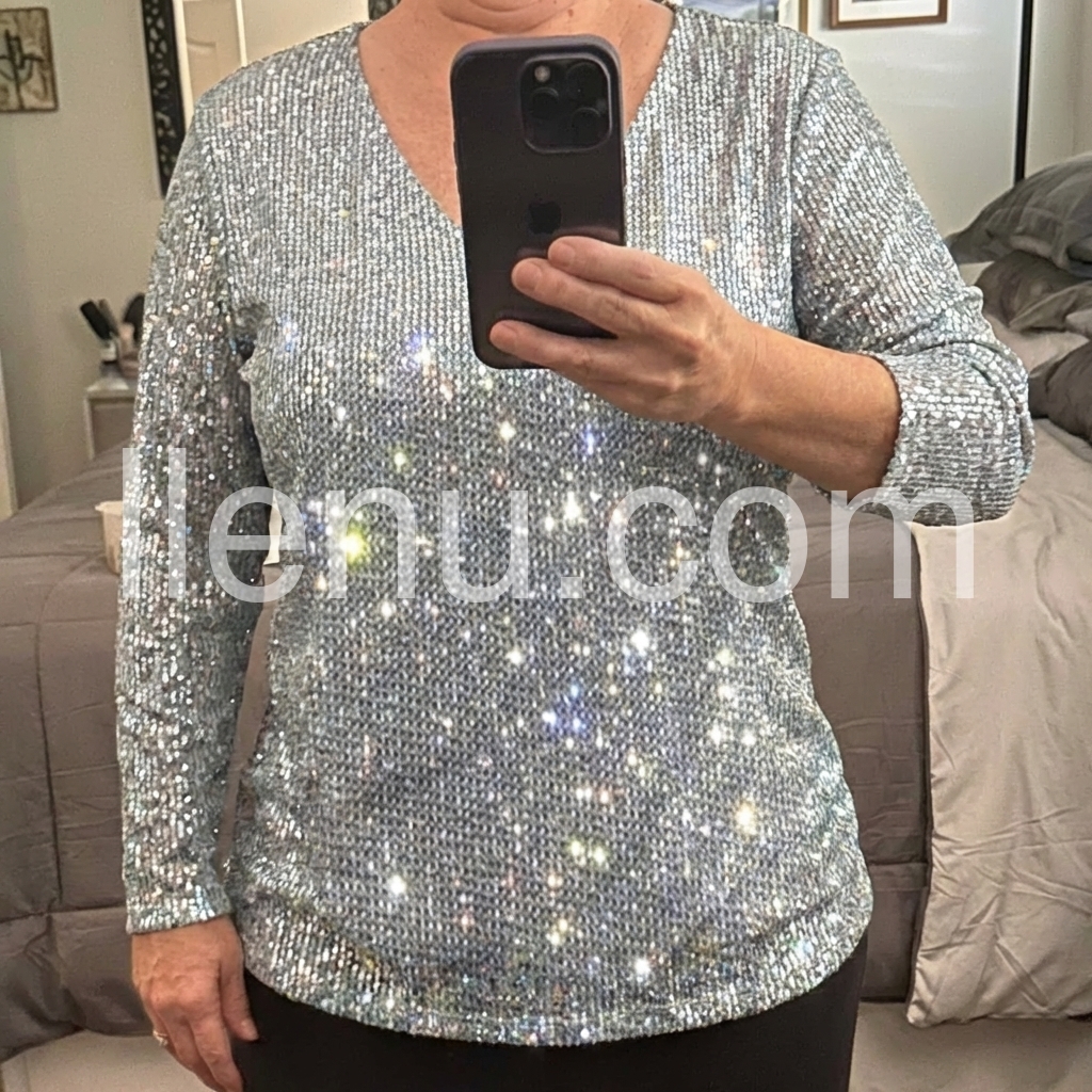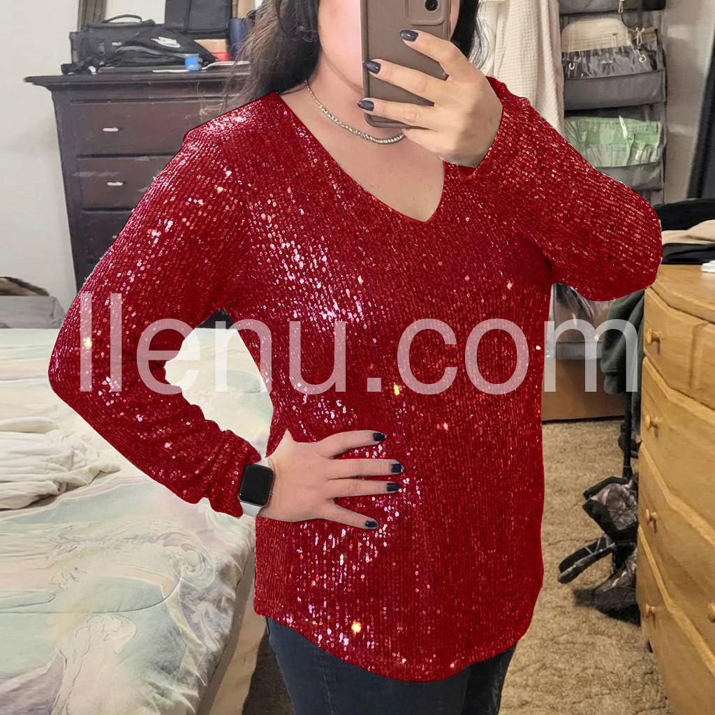 Yes!It runs true to the garment size chart please choose your size based on your measurements.Don't miss out on this beautiful v-neck top! The intricate sequin detailing is sure to make a statement and the v-neck cut gives it a modern feel. This top is perfect for any special occasion or night out.