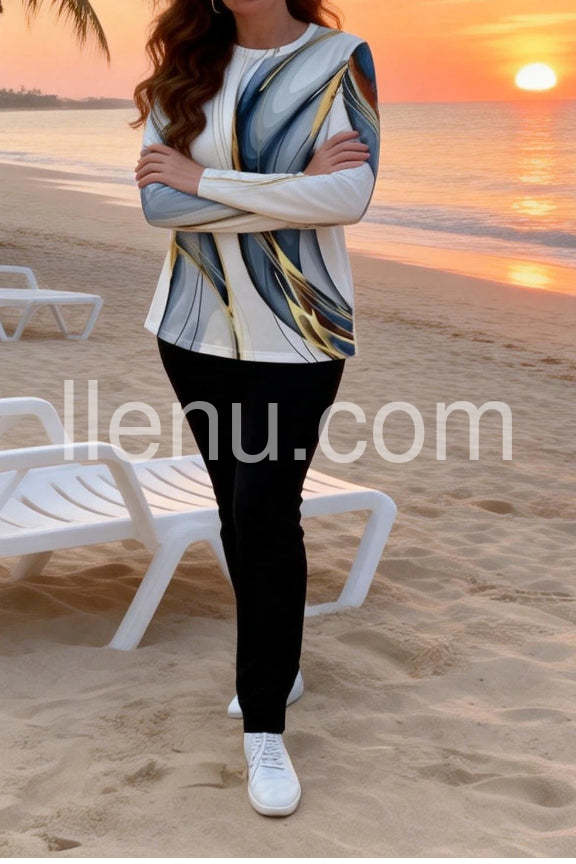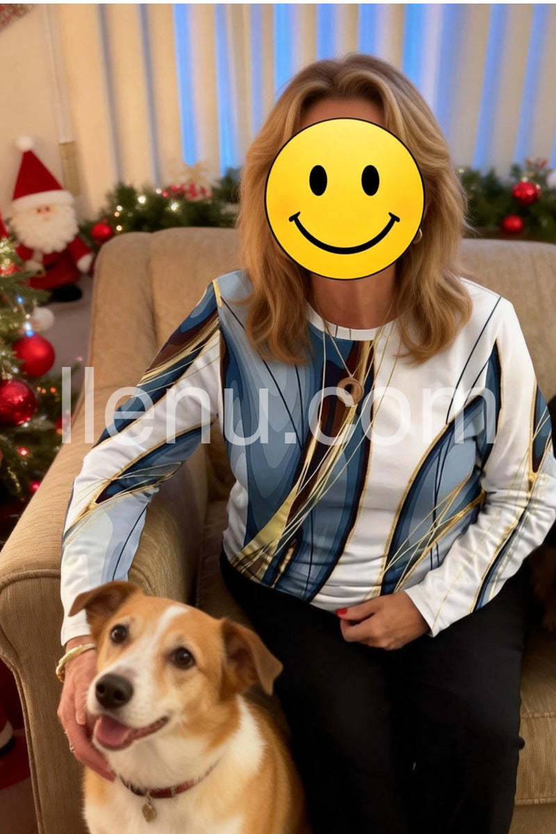 Stunning Geometric Print Round Neck Long Sleeve Top