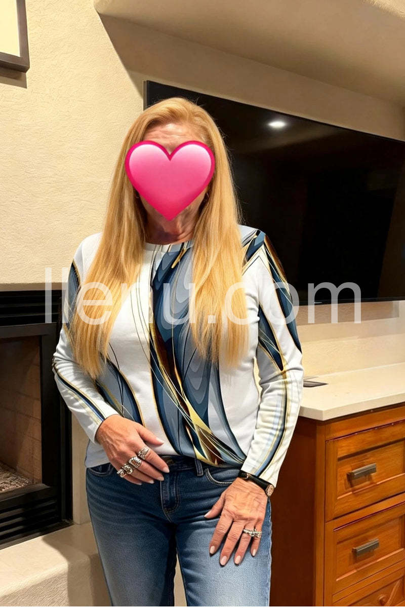 Yes!It runs true to the garment size chart please choose your size based on your measurements.Elevate your wardrobe with this Stunning Geometric Print Round Neck Long Sleeve Top. Designed with a modern geometric pattern, it offers a sophisticated look suitable for both professional and casual settings. The round neck and long sleeves provide comfortable coverage, making it ideal for layering or wearing alone. Crafted to combine style and practicality, this top enhances your outfit with a contemporary edge while ensuring all-day comfort.
