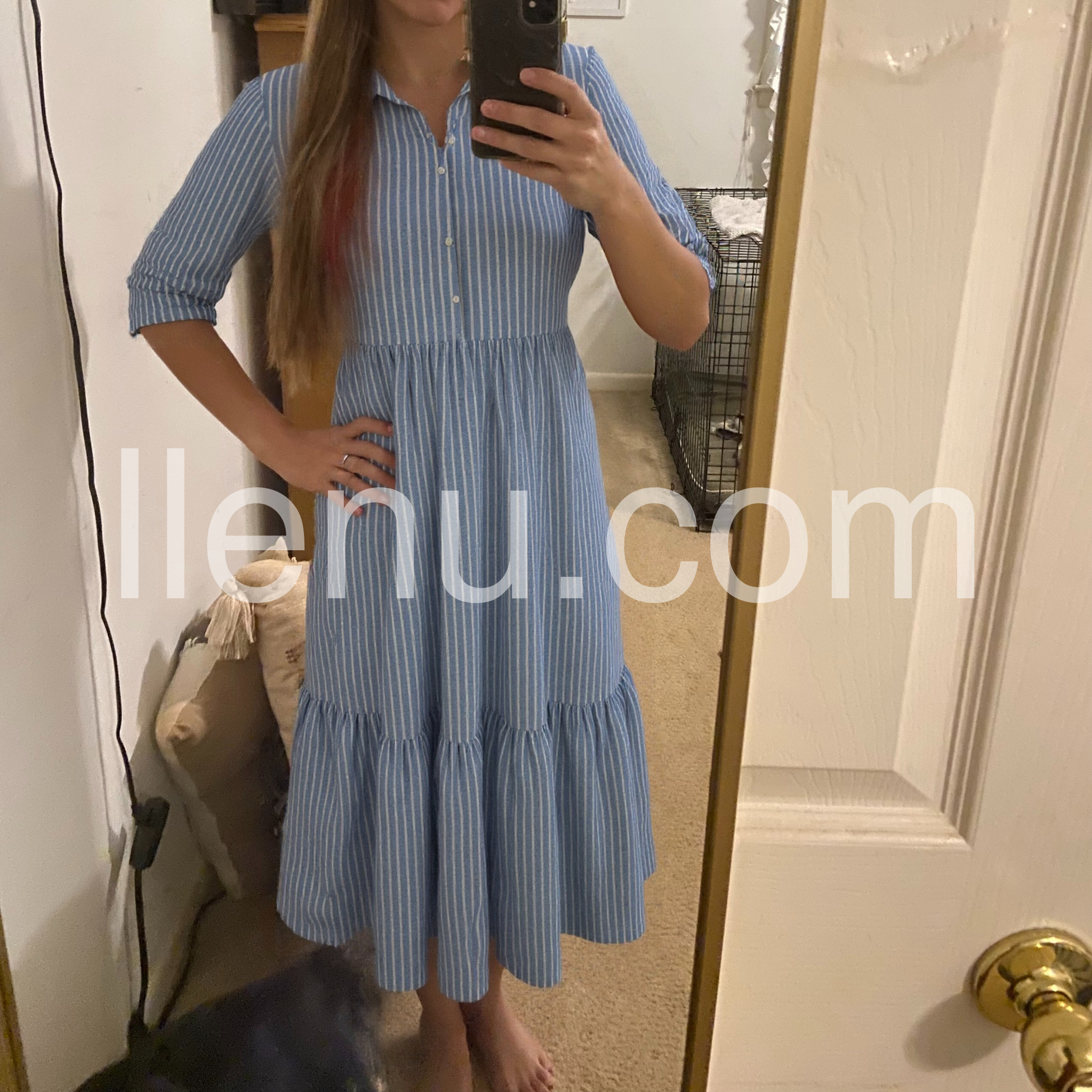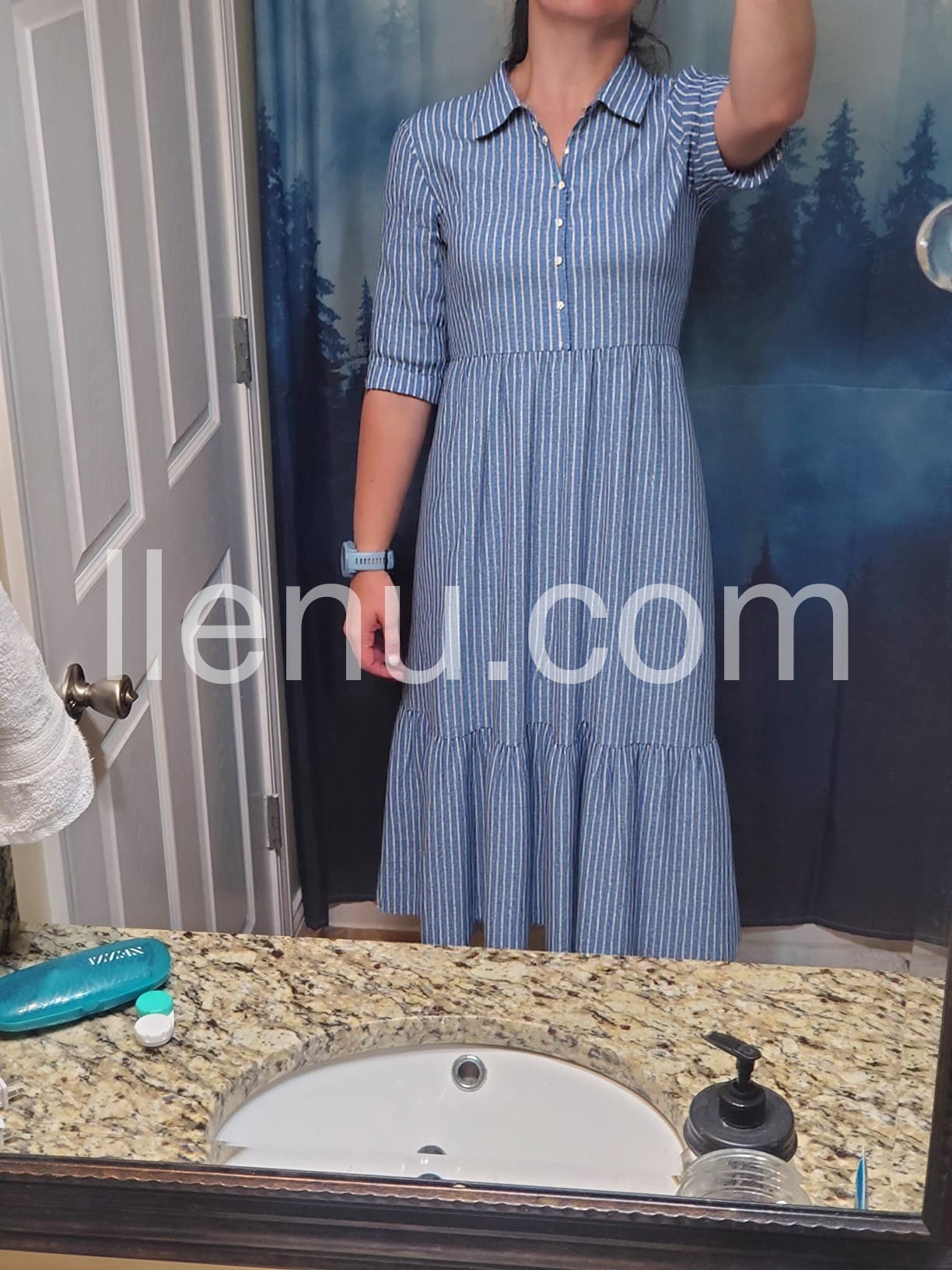 Yes!It runs true to the garment size chart please choose your size based on your measurements.Bring a touch of effortless elegance to your wardrobe with our Breezy Striped Print 3/4 Sleeve Maxi Dress. Featuring a stylish striped print and 3/4 sleeves, this dress is both comfortable and fashionable. Perfect for any occasion, this maxi dress will keep you looking and feeling your best.